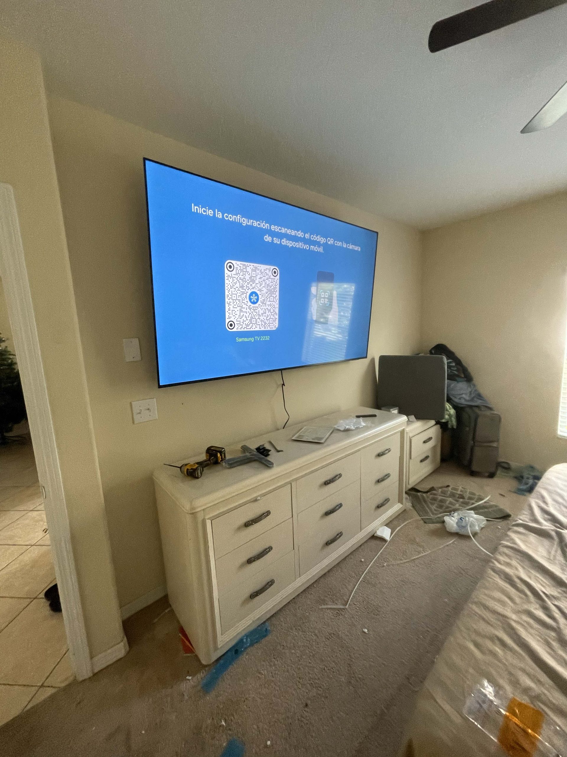 A recent project showcasing our professional TV mounting service for a family living room, ensuring optimal viewing angles.